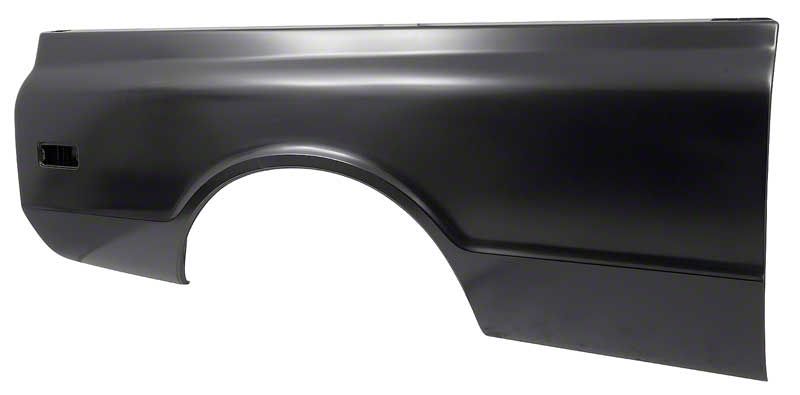 Reproduction of the original bedside panel designed for use with Chevrolet and GMC Fleetside pickup truck models with a 6-1/2' short bed. Each bedside panel is manufactured in stamped steel to original factory specifications featuring correct contours for an authentic appearance and fit. Each panel features stake pockets and rear side marker lamp provisions matching the original GM design for an authentic appearance and fitment. Replaces original GM part number # 3924294. Each panel features a black EDP coating for rust and corrosion prevention. For use on the RH passenger side.