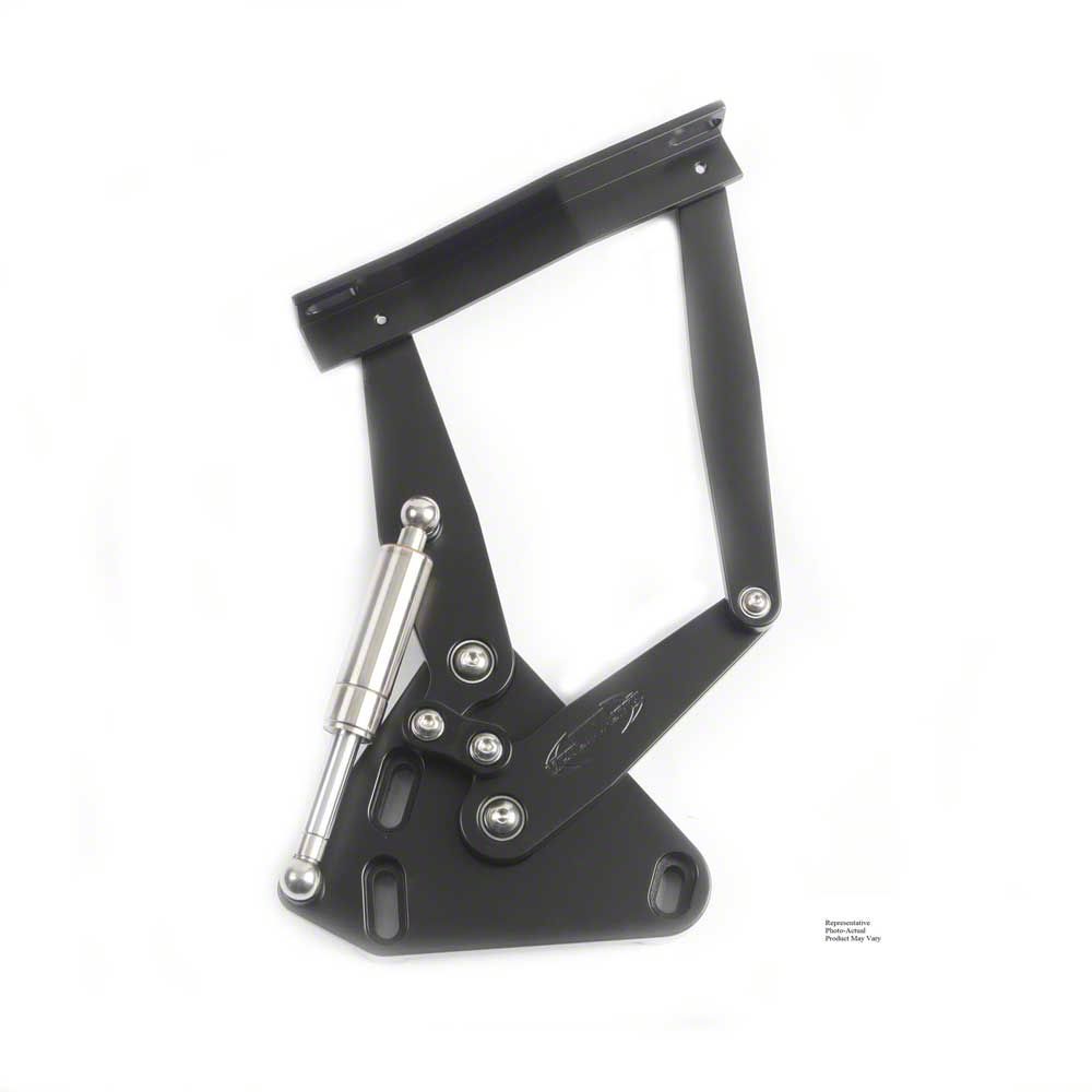 Whether you are looking for the ultimate in under-hood customizing or just want to replace your weak stamped-steel stock hood hinges, Eddie Motorsports hinges from Eckler’s are the answer. The hinges are CNC machined from solid chunks of 6061-T6 billet aluminum in the USA. Stainless steel nitrogen struts are utilized instead of springs and sealed ball bearings are utilized at all pivot points for smooth operation. for reliable operation. Designed as direct fit, “bolt on” units, the hinges utilize the stock mounting holes with elongated slots for ease of gap adjustment.
