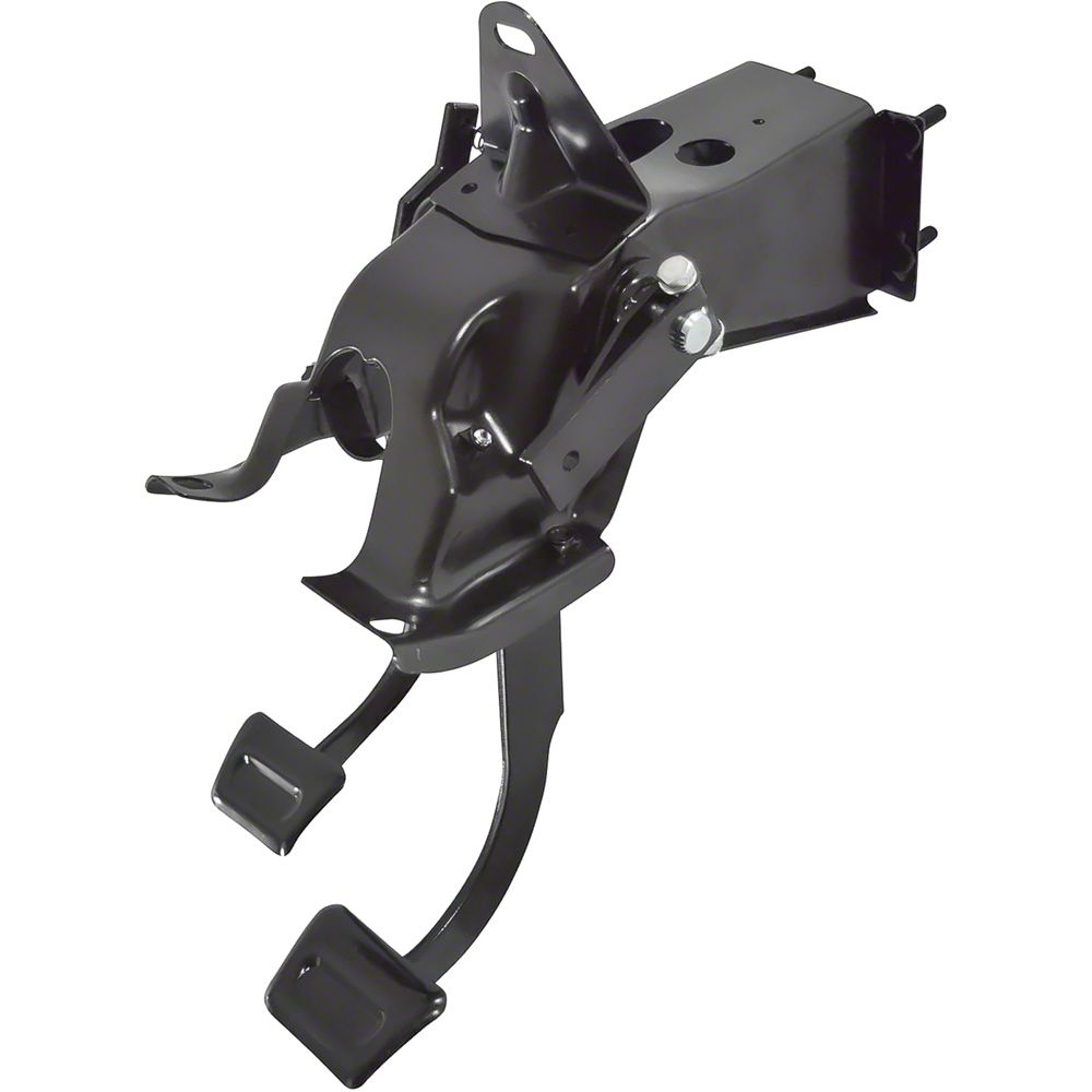 Reproduction brake and clutch pedal assembly for 1967-72 Chevrolet and GMC Pickup, Blazer, Jimmy, and Suburban models equipped with manual transmission. Assembly includes steel bracket, pedals, pedal bushings and hardware. Pedal pads are available separately.