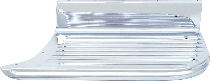 Reproduction bed side step designed for use with 1955-1959 Chevrolet 1/2, 3/4 ton pickup trucks with long bed design. Manufactured to original specifications replicating the original in design, fitment and appearance. This reproduction features a beautifully polished chrome finish that adds a custom appearance to any 1955-59 long bed model. Features correctly placed pre-drilled mounting holes for installation. For use on RH passenger side.