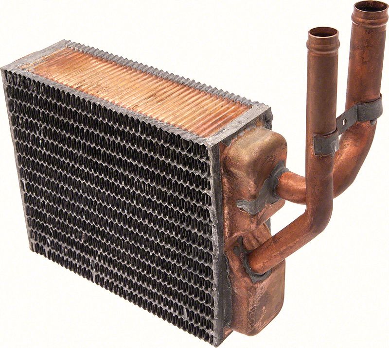 Original reproduction style heater core assembly for use with various 1960-63 Chevrolet, GMC pickup, Panel, and Suburban models with recirculating heater. Each heater core is manufactured to correct factory specifications and features a copper core and brass tank. Models with recirculating heater can be identified by the two-lever control panel and the blower motor being located in the cab beneath the dash. Be sure to check the original heater core measurements to insure a proper replacement. Measures 7 1/8" x 6 1/8" x 2 1/2".