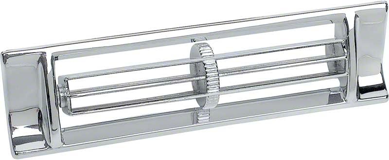 Reproduction center dash air vent for 1967-72 Chevrolet and GMC truck models with factory air conditioning. Each vent unit is manufactured in quality die-cast zinc and chrome plated matching the original in appearance and design. Will replace the old or pitted original exactly.