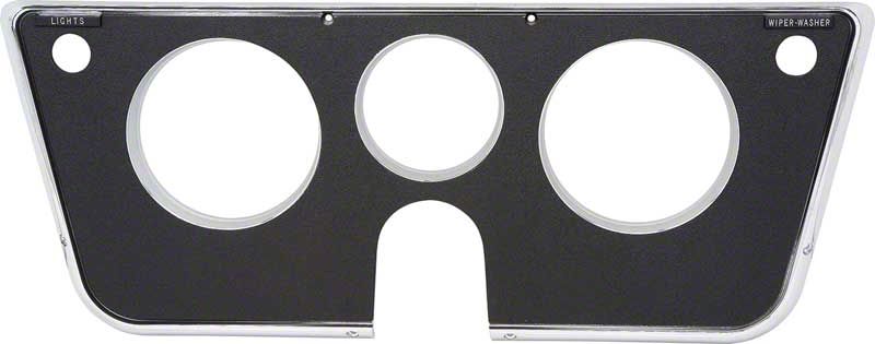Correct reproduction dash instrument gauge bezel for 1969-72 Chevrolet and GMC Pickup, Blazer, Jimmy, and Suburban models originally equipped with warning lights. Each dash bezel is manufactured in injection-molded ABS replicating the original design featuring correct chrome edges surrounding gauge openings. Gauge panel features correct color black and original grained surface. 3 gauge openings.