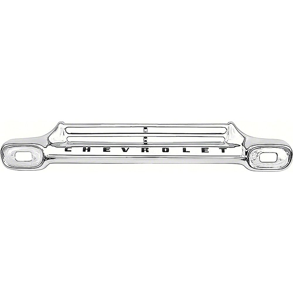 Reproduction front grill assembly for 1958-59 Chevrolet pickup trucks. Each reproduction grill is manufactured to original factory specifications offering a great fit and beautiful triple chrome plated finish. Features "CHEVROLET" black lettering same as the original GM grill. This outstanding reproduction is designed to replace the original GM grill exactly and includes correct mounting locations for installation. Replaces Original GM part numbers # 3750327, # 3760328.