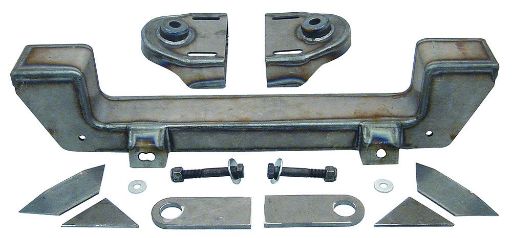 Get rid of that straight axle front end with this Mustang II IFS crossmember kit. This crossmember is compatible with 1974-78 Mustang II suspension components and have the factory geometry built in. Kit includes the crossmember, spring hats, boxing plates, strut rod braces and steering rack extenders. We recommend using a 1974-78 Mustang II manual steering rack or a 1982-88 Thunderbird power steering rack with this kit.