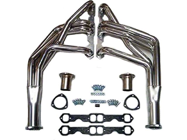 Eckler's Classic Chevy Trucks is happy to offer new reproduction headers for your small block 1965 or 1966 Chevy truck. When you're looking to really put some horsepower to the ground with your classic Chevrolet, consider Doug's Long Tube Header Kit from Pertrnoix. This kit will give you unbelievable power over the widest possible RPM band. All pipes have a great looking silver ceramic steel coating, guaranteed for a long life. This kit includes all mounting hardware and will directly fit to your factory muffler system, making for a simple and painless installation process. These headers are for off-road use only and will work with both automatic and manual transmissions. Trust Eckler's Trucks for all of your restoration and replacement needs
