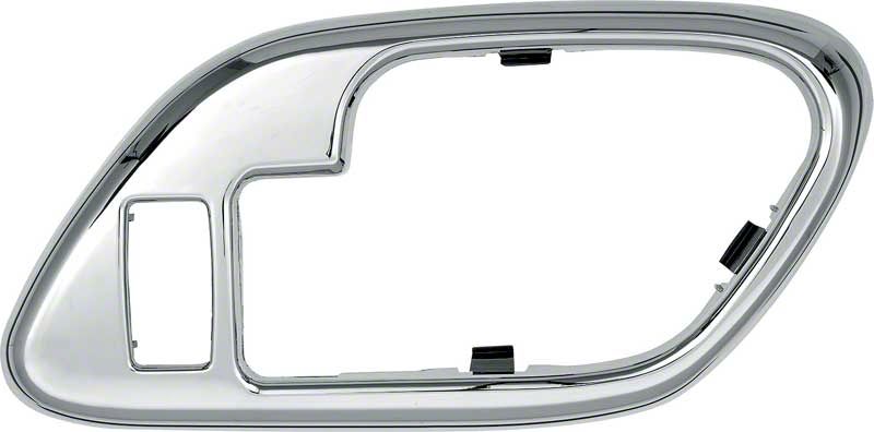 Reproduction of the inner interior door handle bezel designed for use with for 1995-2002 Chevrolet and GMC C/K pickup, 1995-2000 Suburban, Tahoe, Yukon, and 1999-2000 Cadillac Escalade models with power door locks. Each door handle bezel is manufactured from quality stamped aluminum to correct factory specifications. For use on the RH passenger side.