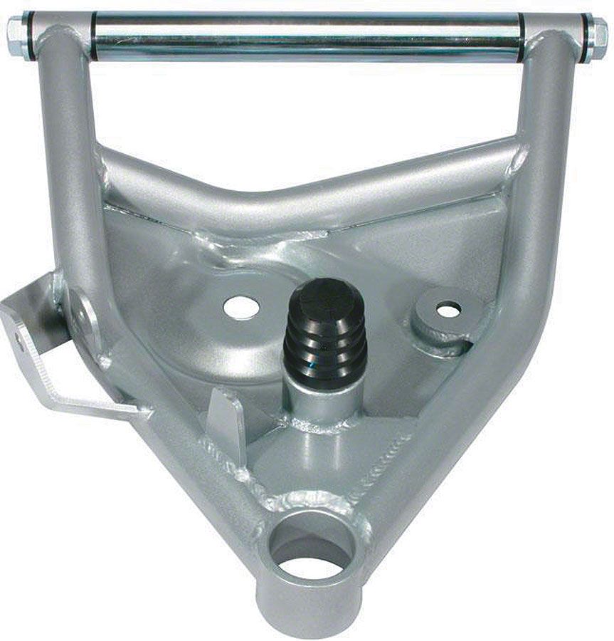 These control arms are designed to add 5° of caster while providing full wheel travel and minimal friction possible. They are made from thick tubing to eliminate distortion from welding and hard use. The bushings are made from self lubricating non-squeak patented plastic that will out last any rubber or urethane. The billet 4140-alloy steel cross shafts and sleeves are zinc plated for lasting performance. The sleeves have an interlocking design that prevents the hardware from ever working loose. Simple bolt-in installation with no modification required. They work with all factory and replacement power steering systems, and with or without O.E. bump stops. Includes ball joints.