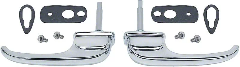 Authorized reproduction outer door handle and push button set for 1947-1951 Chevrolet and GMC Pickup truck models. These outer door handles are manufactured in quality die-cast zinc featuring a beautifully chromed polished finish. Perfect replacements for any restoration. This set includes everything you need to replace both RH and LH door handles. Includes outer door handles, gaskets and hardware. Sold in sets for RH and LH doors. The Authorized logo represents products that meet or exceed stringent quality control standards. This item has been sanctioned and approved by .
