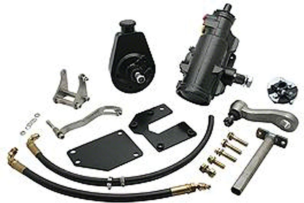 - Kit Includes: V8 Power Steering Pump, Brackets, Gear Box, Hoses, Pitman Arm & Hardware