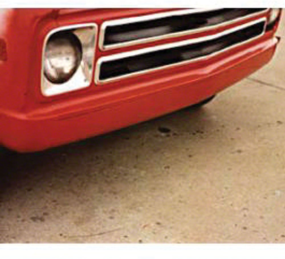 Constructed of 18-gage steel, this pan takes the place of the front bumper for a slick, smooth look. The front pan fits between the front fenders and below the grille. The front extensions of the truck frame must be shortened approx. 2" before installation. The front pan is bolted or welded below the grille and may be welded at the seams for the complete smooth effect.