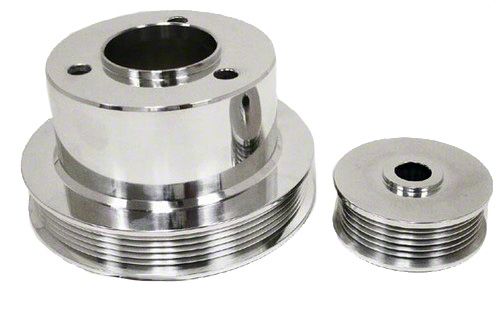 Ecklerls Chevy Trucks now offers a polished aluminum billet 6 groove serpentine crank and alternator pulley set. These are for the Chevy 1988-1993 trucks 454 7.4L engine. The pulleys are CNC-machined from the lightest, most durable materials possible, 6061-T6 aluminum billet. The pulleys are a 25 percent underdrive. The crank pulley is 5 7/8" diameter. The alternator pulley is 3" diameter.