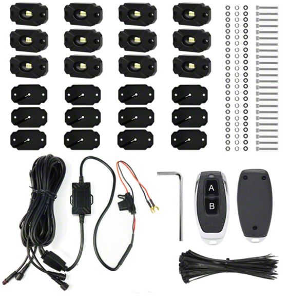 Introducing the ULTRA12WK 12pc Ultra Bright White LED Rock Light Crawler Kit from Race Sport Lighting, the pinnacle of off-road lighting technology. With an astounding 14,000 lumens of brilliant white light output, this kit redefines the standard for unparalleled brightness, ensuring maximum visibility on even the most challenging trails. Featuring seven impressive fade and strobe patterns, the ULTRA12WK adds a dynamic flair to your off-road adventures, allowing you to customize your lighting experience to match any mood or setting. Whether you're conquering rugged terrain or showcasing your vehicle at a nighttime event, this kit delivers versatility and style that commands attention. Engineered for durability and reliability, the ULTRA12WK is built to withstand the toughest conditions. Its rugged construction ensures resilience against vibrations, impacts, and harsh weather elements, making it a trusted companion for all your outdoor excursions. Designed for hassle-free installation and ease of use, this 12-piece kit seamlessly integrates into your vehicle setup. With flexible mounting options and straightforward wiring, you can have your lights installed quickly and efficiently, ready to illuminate the path ahead with confidence and precision. Illuminate your off-road adventures with the power and versatility of the ULTRA12WK 12pc Ultra Bright White LED Rock Light Crawler Kit from Race Sport Lighting. Experience unrivaled brightness, dynamic lighting effects, and rugged durability that elevate your driving experience to new heights. Choose the ULTRA12WK and light up the night with style and confidence.
