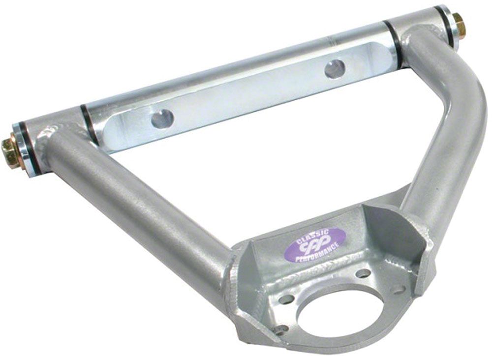 These control arms are designed to add 5° of caster while providing full wheel travel and the lowest friction possible. They are made from thick tubing to eliminate distortion from welding and hard use. The bushings are made from self lubricating non-squeak patented plastic that will out last any rubber or urethane. The billet 4140-alloy steel cross shafts and sleeves are zinc plated for lasting performance. The sleeves have an interlocking design that prevents the hardware from ever working loose. Simple bolt-in installation with no modification required. They work with all factory and replacement power steering systems, and with or without O.E. bump stops. Includes ball joints.