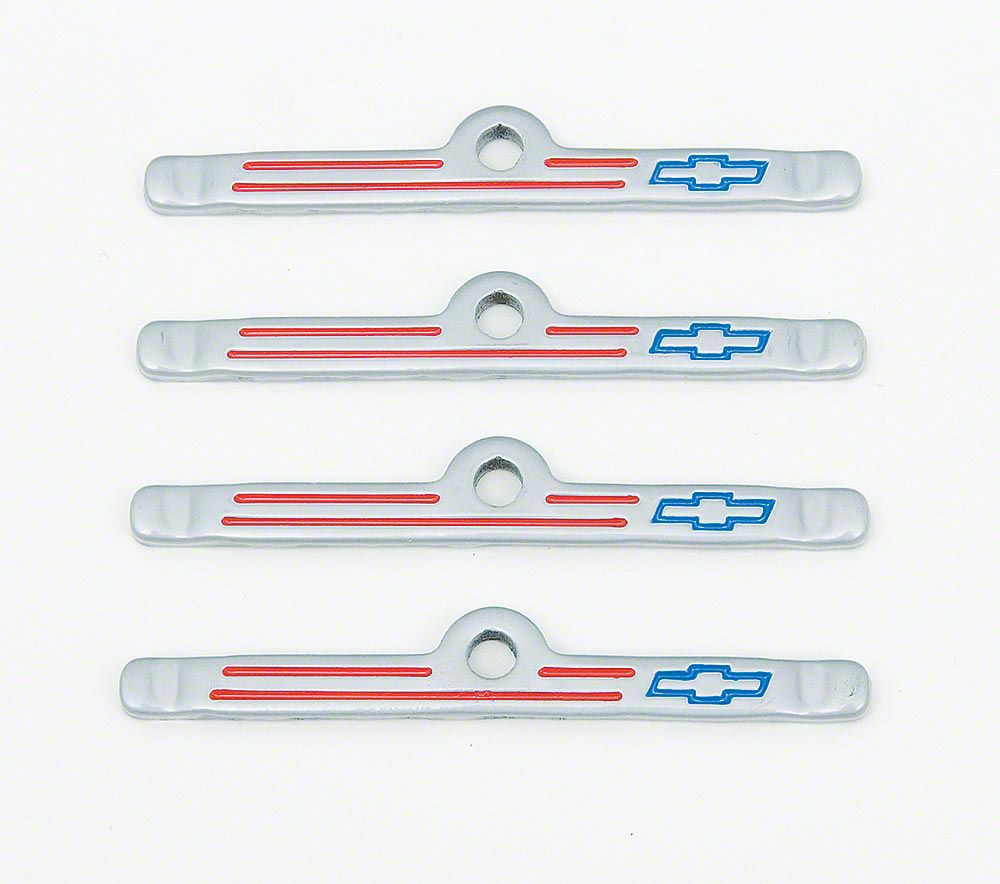 Valve Cover Clamps, Gray, With Bowtie Logo (55-57 Chevy Bel Air; 55-57 Chevy 150; 55-57 Chevy 210; 55-57 Chevy Nomad)