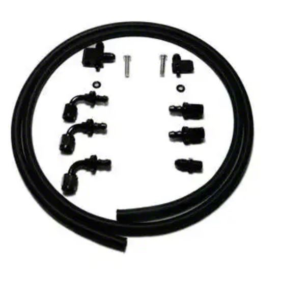 C&R introduces our LS Steam Vent kit for GM LS engines. The kit can be plumbed to the suction side of the water pump or to the radiator. Can be used with Carb or EFI intakes. Comes with black -4 AN push loc fittings and braided hose so you can custom tailor it to your needs without special tools. Provides a clean, professional look while providing proper air bleeding for the cooling system
