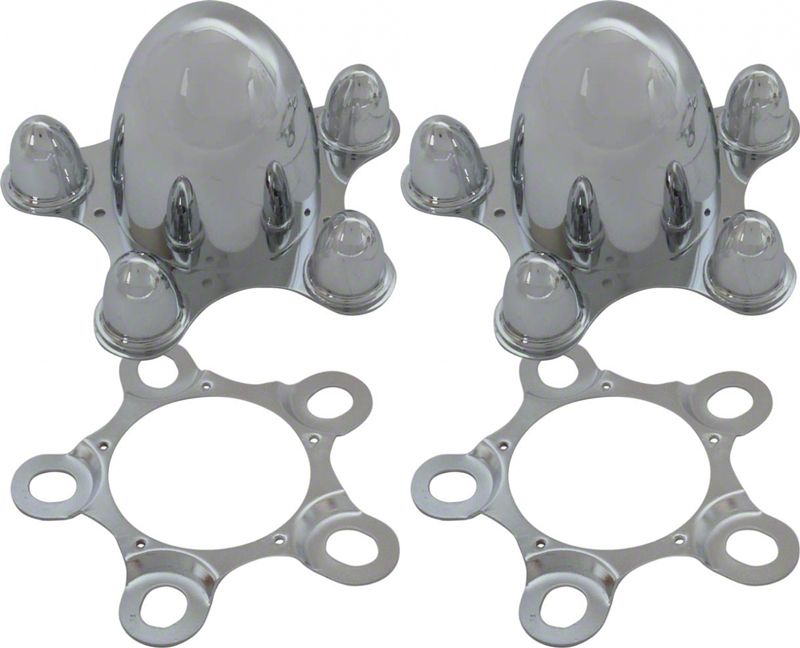 Don?t Be Fooled by Plastic Imitations!! These are Zinc Diecast with Beautiful Chrome Plating. They include mounting plates and screws. They will look great for years to come or can be switched out often depending on your mood. Sold as a pair to help those with different bolt circles. Order two pair if your bolt circles are all the same size. Other sizes are also available.
