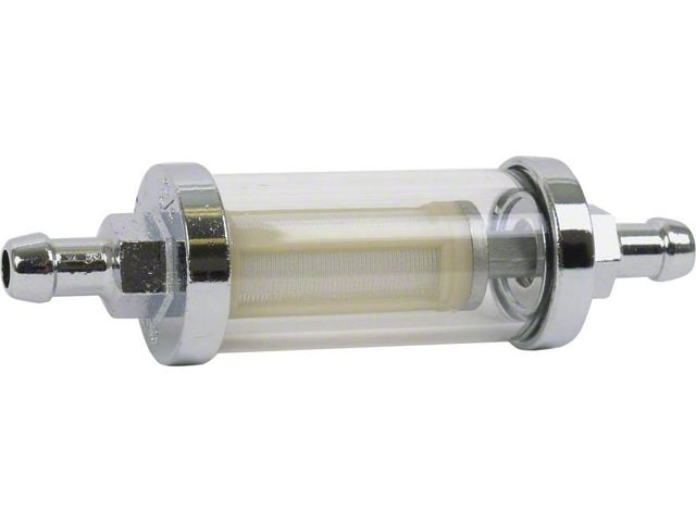 We all know that impurities in gasoline can wreak havoc on your carburetor, so we are offering a glass-bodied filter that will allow you to see just what exactly is traveling through your fuel lines.