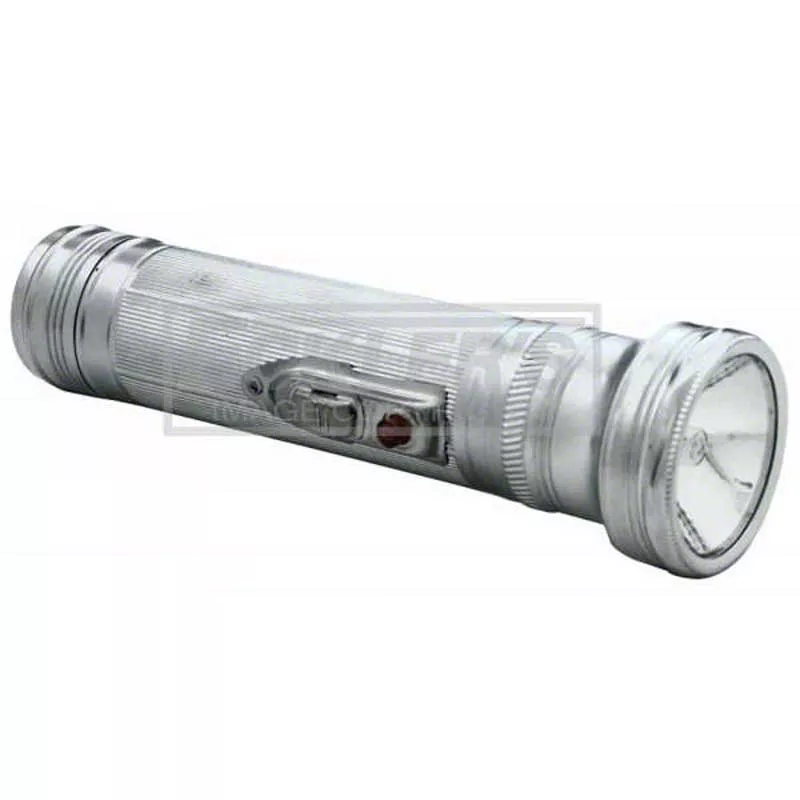 Light up the night with this nifty retro flashlight from Eckler's Late Great Chevy. This adjustable beam flashlight features an adjustable beam and retro satin chrome finish. The incadescent bulb lights your way with a familiar soft glow. This fun flashlight makes a great addition to your glove box, tool box or anywhere. Whether you're looking for restoration parts, accessories or gifts, Eckler's Late Great Chevy is your source for all your Chevrolet needs.