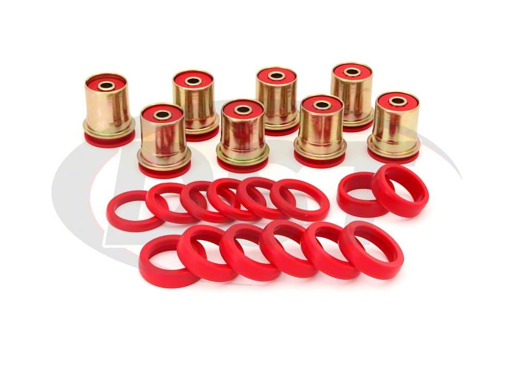 _x000D__x000D_Construction and Appearance. Manufactured using Hyper-Flex performance polyurethane, these bushings deliver superior durability and longevity compared to traditional rubber components. Their full-floating design allows for non-binding, efficient movement, promoting smoother suspension operation.