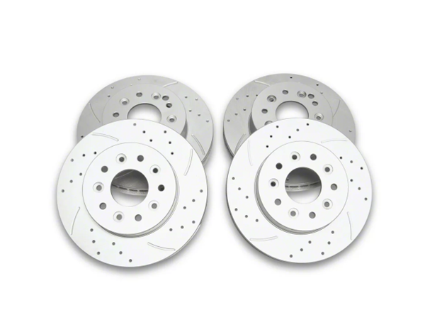 These cross-drilled and slotted rotors offer better heat dissipation and enhanced pad bite, which translates to shorter stopping distances and more fade resistance during spirited driving.