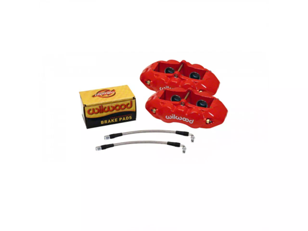 These performance Wilwood D8-4 calipers are 56% lighter than stock while providing superior clamping force. They’re constructed from forged billet aluminum with stainless steel pistons and high-temperature seals.