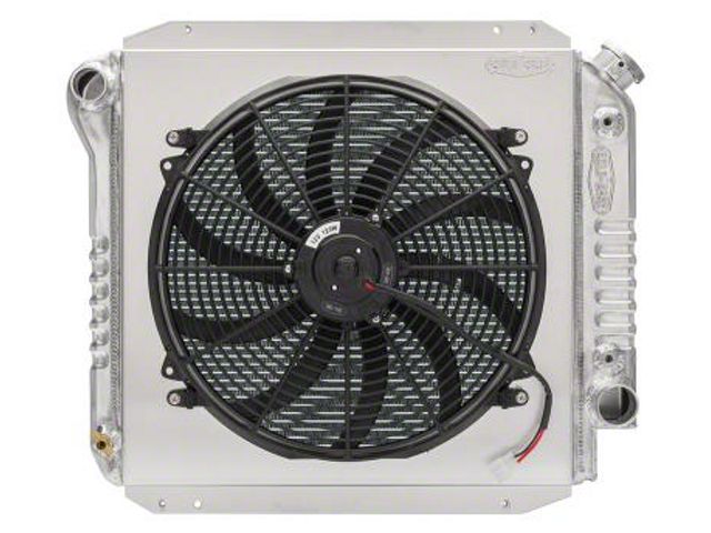 1966-1977 Ford Bronco Aluminum Performance Radiator with thinner core with 16 inch Fan and Shroud Kit. These COLD-CASE radiators are Tig welded 100 percent aluminum and absolutely beautiful.