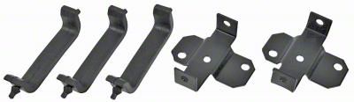 This kit is necessary when converting from a standard 3 row radiator to any Heavy Duty 4 row or most aluminum radiators. These brackets and insulators bolt in to the bottom of the core support the radiator rests on these two spots. An extra rubber insulator is included for the upper bracket as a standard duty car will have a smaller insulator on the top bracket.