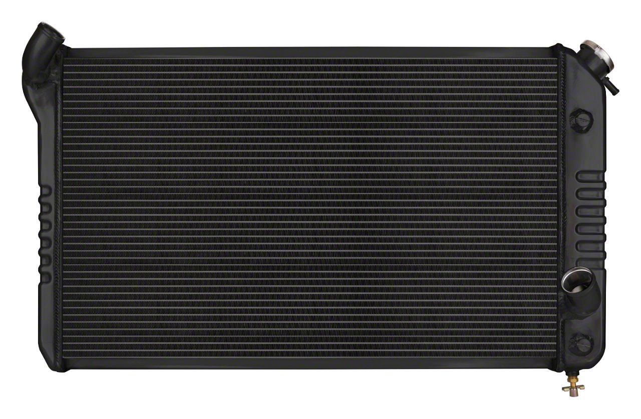 Construction and Appearance. Finished in matte black, this radiator features a fully TIG welded aluminum build that ensures structural integrity and long-lasting resistance to corrosion. The use of stock-style tanks preserves the factory appearance, while 16 corrugated fins per inch improve heat dissipation for maximum performance. Every unit is pressure tested for reliability under real-world engine conditions.