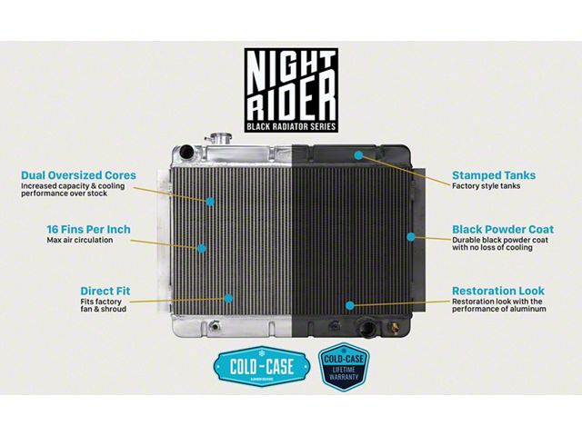 Our Night Rider Black series radiators blend performance with original appearance to give you the best of both worlds. You will be hard pressed to find a difference between an original versus a COLD-CASE.