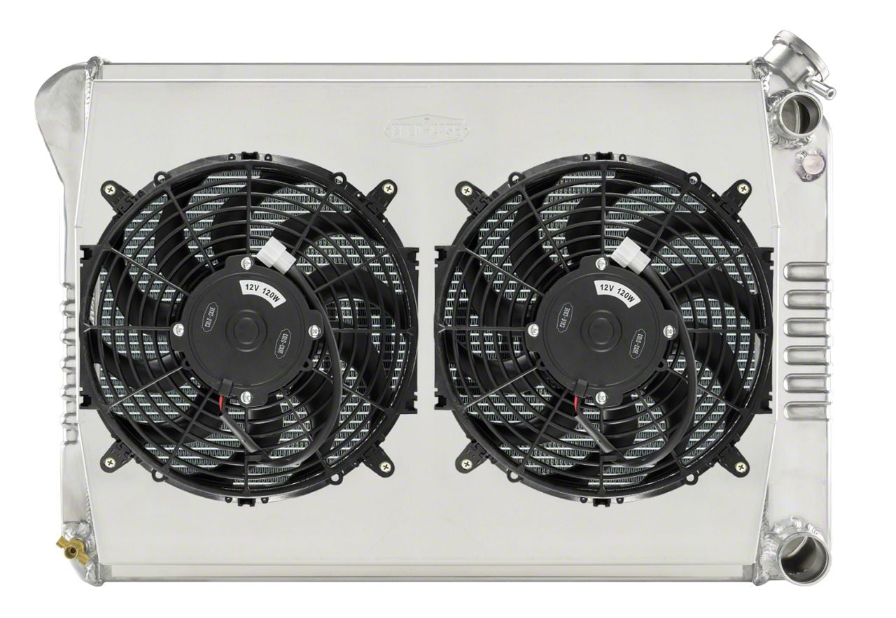 68-79 Chevrolet Nova LS Swap Aluminum Performance Radiator And Dual 12 Inch Fan Kit. This radiator sits in saddle mounts. Comes without brackets. For bracket version, see CHC547SK.When you need the biggest and best, look no further than the Cold Case Super Duty Line. All Super Duty kits include 2 row radiators with 1.25" tubes, aluminum fan shroud and this application now includes dual 12" fans, flowing at 1400cfm per fan! For extreme horsepower applications OR if you just want the best of the best. Also perfect for cars with not much clearance.These COLD-CASE radiators are Tig welded 100 percent aluminum and absolutely beautiful. Don't buy a 3 or 4 row aluminum radiator! It doesn't cool as good as these oversize 2 row models.These radiators are original appearing and have the correct stamping. Once painted, you'd be hard pressed to find a difference over an original versus a COLD-CASE.100 percent TIG weldedFan Diameter 16 InchAll AluminumPolished OE style tanks(2) 1.25 inch Tubes16 fins per inchCorrugated fins that give more surface area and more thermal transferPressure testedFor automatic transmissionDirect fitment for 68-79 Nova w/ Big BlockRadiator SpecsCore Height 16.85 inchCore Width 23 inchOverall Height 19 inchOverall Width 28.35 inchOverall Thickness 6.75 inchTubes (2) 1.25 inch TubesUpper Hose 1.50 inchLower Hose 1.50 inchUPC: 846861016831