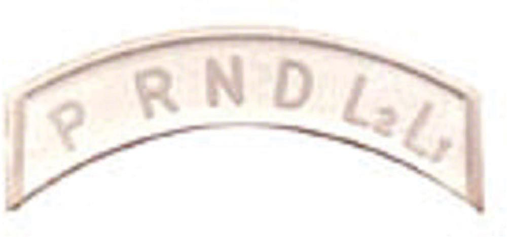 This is a new Column Shift Indicator Lens for the TH350/400 transmission when installed in a car originally equipped with a Powerglide. The lens is laser and machine cut from clear plastic, with white paint filled letters.
