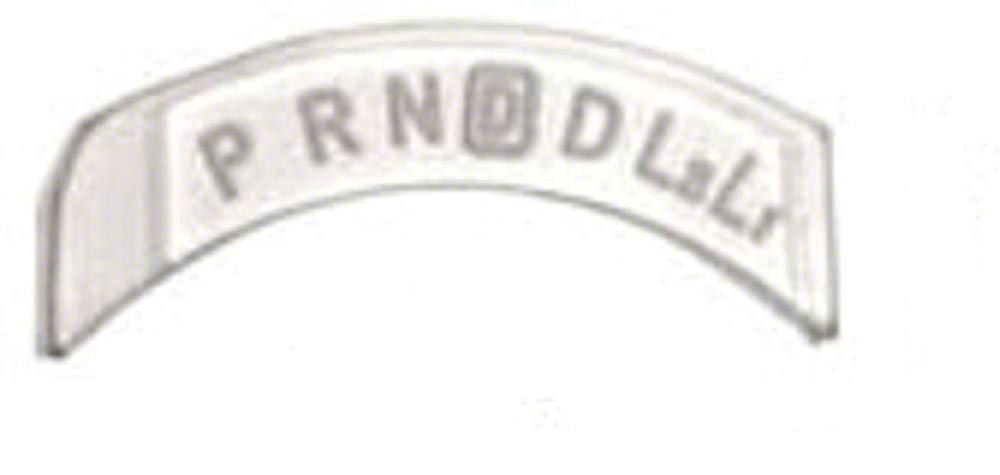 This is a new Column Shift Indicator Lens for the Overdrive Transmission when installed in a car originally equipped with a Powerglide. The lens is laser and machine cut from clear plastic, with white paint filled letters.