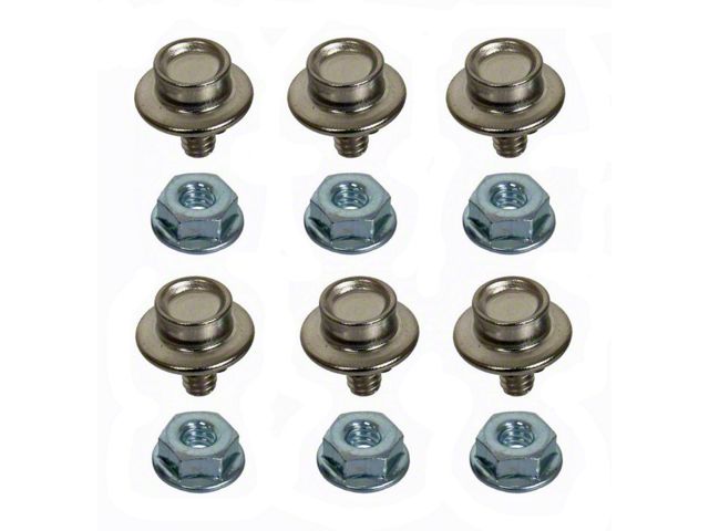 Concours quality stainless steel with brass interior semi-tubular rivets. These snaps are mounted, 3 per side, on the interior quarter trim panel and are used to secure the top boot on the sides. These correct original style rear quarter trim snaps used on most 1960/1971 Fords. Package of six. For all of your classic Ford restoration needs, count on MAC's.