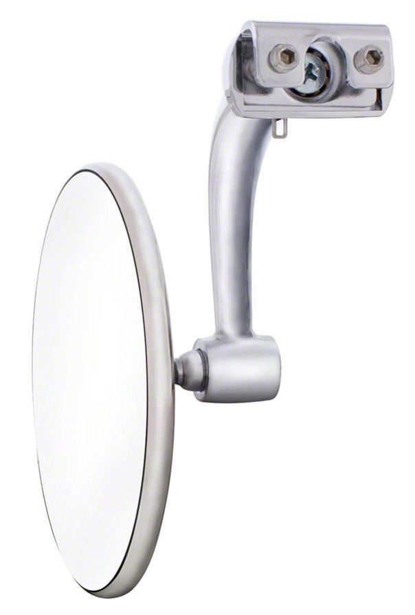This type of mirror style was very common on '50s and '60's modified vehicles, and still looks great today. It clamps on so you can move it, or remove it as you desire. The mirror is convex to increase your visibility, and is similar to passenger mirrors on modern vehicles. Many use this mirror on the passenger side, and our standard glass 4" Peep mirror on the driver's side. This makes the view behind you similar to the modern vehicle you likely drive every day