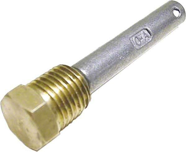 Great Upgrade For Your Cooling System Protects Aluminum Cooling System Parts Protect Cooling Systems From Galvanic Corrosion Designed To Replace The Drain Petcock In The Radiator 1/4" NPT Thread May Require Trimming To Fit Made In The USA There is a secret weapon available to guard against cooling system corrosion - the sacrificial anode. Sacrificial anodes are created from a metal alloy with a more negative electrochemical potential than the other metal it will be used to protect. The sacrificial anode will be consumed in place of the metal it is protecting, which is why it is referred to as a "sacrificial" anode. This will protect aluminum most of all but also cuts
