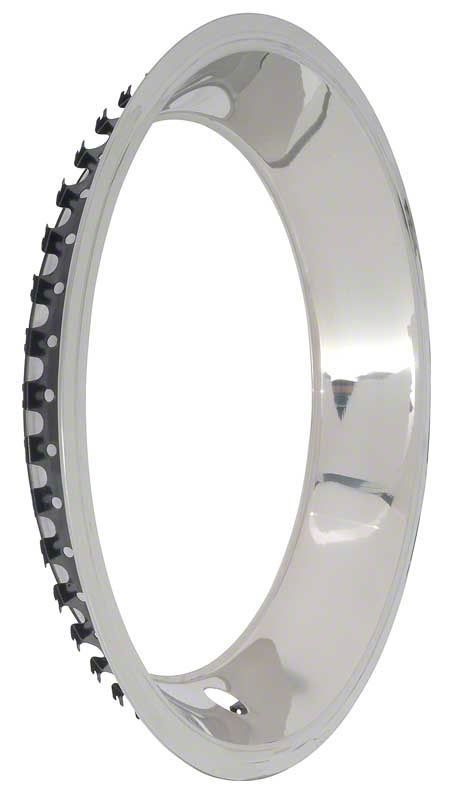 Construction and Appearance. Crafted from high-quality stainless steel, the 15-Inch Rally Wheel Trim; 2-5/8-Inch Deep; Stainless Steel offers long-term durability and resistance to rust or corrosion. Its polished surface adds a bright, mirror-like finish, contributing to a clean and period-correct visual appeal. The integrated retention clips allow a secure, snap-on fit without the need for tools.