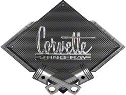 Corvette 1966-1967 Stingray Emblem Metal Sign, Black CarbonFiber, Crossed Pistons, 25 X 19