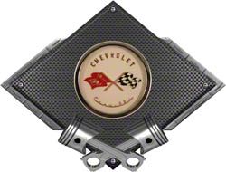 Corvette C1 1953-1955 Emblem Metal Sign, Black Carbon Fiber, Crossed Pistons, 25 X 19