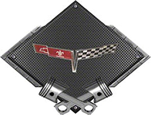 Corvette C3 1980 Emblem Metal Sign, Black Carbon Fiber, Crossed Pistons, 25 X 19