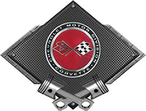 Corvette C3 Crossed Flags Sunburst Emblem Metal Sign, BlackCarbon Fiber, Crossed Pistons, 25 X 19