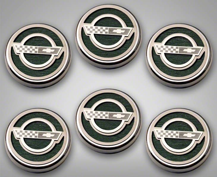 Dress up your C4 Corvette with our chrome and brushed stainless steel C4 Style Fluid Cap Cover 6 Pc Set FOR MAUNAL TRANSMISSION. Choose SKU 023002 for Automatic Transmissions - 023002. These C4 Corvette accessories feature laser-etched C4 logos with your choice of vinyl inlay color. Fits 1984-1996 Corvettes over the stock engine caps and adds a phenomenal custom style to the engine bay.