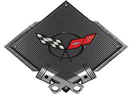 Corvette C5 1997-2004 Emblem Metal Sign, Black Carbon Fiber, Crossed Pistons, 25 X 19