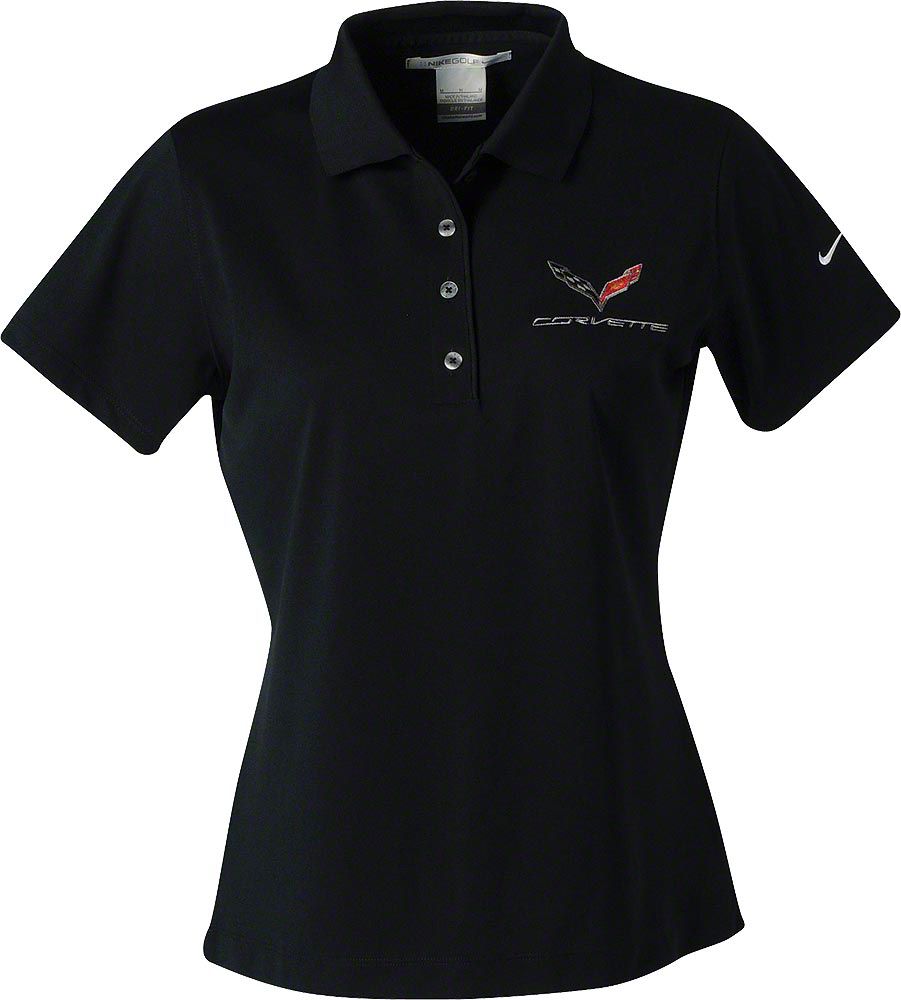 Performance polo with Dri-Fit moisture management technology. Flat knit collar and open hem sleeves. Pearlized buttons. Nike logo on sleeve. 100% polyester. Tailored for a feminine fit.