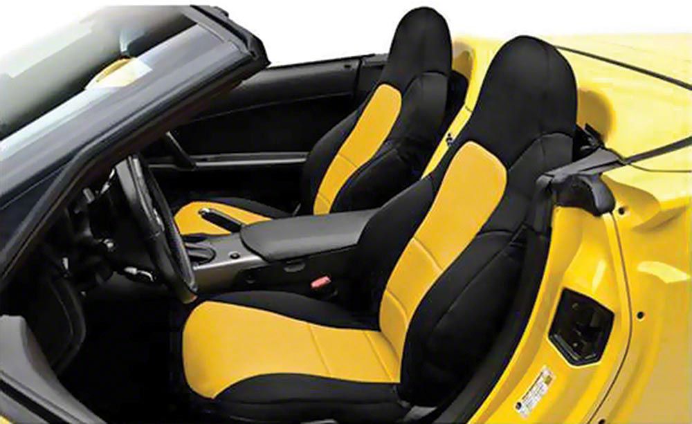 Construction and Appearance. Made from lightweight and less-expensive alternative to genuine neoprene, these covers feature unique two-tone colors to complement your Corvette's interior. They are precisely manufactured for a perfect fit, simply slipping over the existing seat fabric.