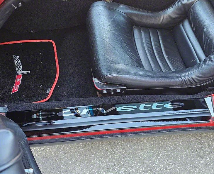 Custom Door Upgrade. The Door Sill Plates with Corvette Lettering bring both protection and personalized style to your interior. These sill plates enhance the entrance area while proudly displaying the Corvette name. They serve as a functional accent piece that elevates the visual appeal and adds a lasting touch of distinction to your vehicle.