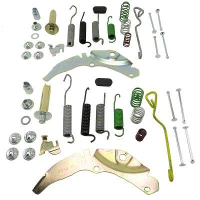 Drum brake hardware kit, front, self-adjusting. Includes all hardware for 2 front wheels.