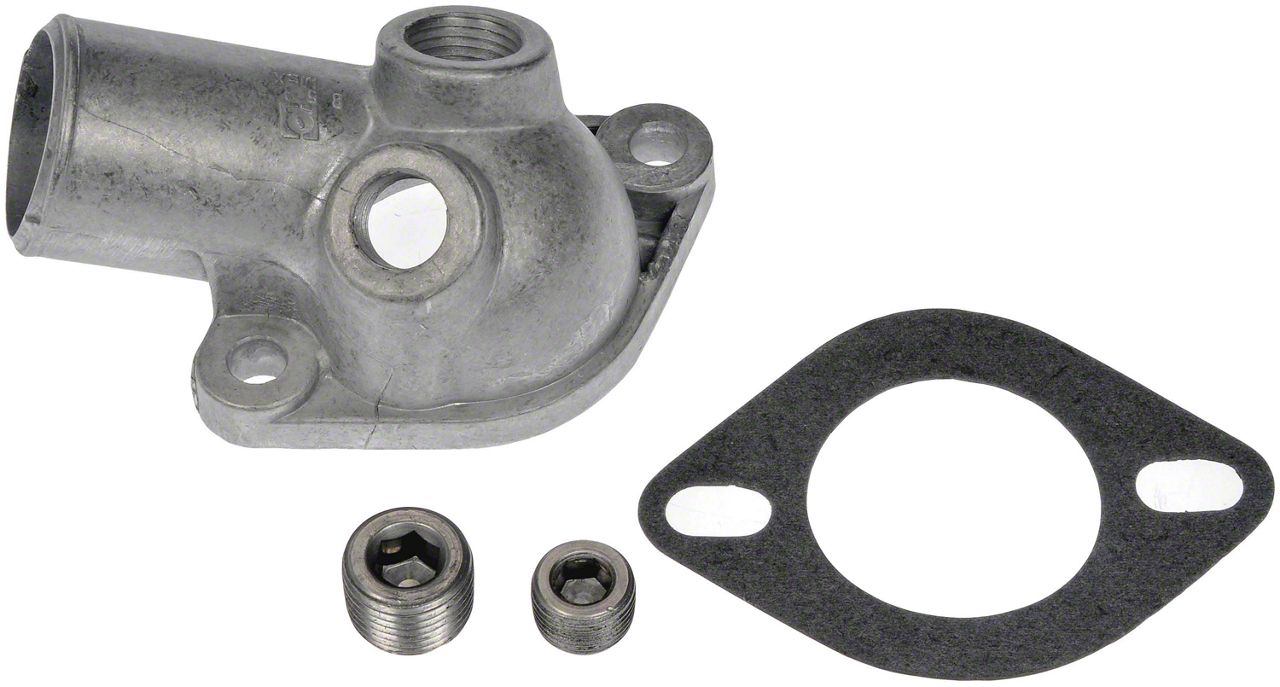 Construction and Appearance. Made from die-cast aluminum, this thermostat housing delivers strength and durability while resisting corrosion over time. The corrosion-resistant finish maintains a clean appearance and ensures reliable sealing in the cooling system.