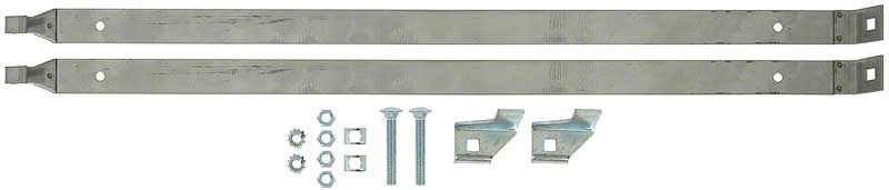 Construction and Appearance. These straps are crafted from stainless steel, providing durability and excellent resistance to rust and corrosion. The design maintains original factory dimensions and length, delivering a precise and custom-fit appearance ideal for restored or maintained vehicles.