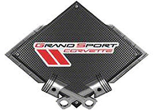 Corvette Grand Sport Emblem Metal Sign, Black Carbon Fiber,Crossed Pistons, 25 X 19